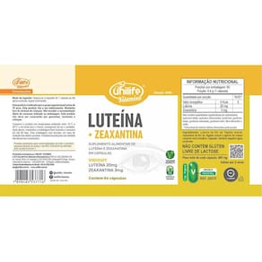 A Luteína e Zeaxantina Unilife 60 Cápsulas é um suplemento alimentar desenvolvido com ingredientes cuidadosamente selecionados para garantir qualidade e pureza. Cada cápsula contém luteína e zeaxantina, proporcionando uma opção prática para complementar a alimentação diária. A cápsula é composta por gelatina vegetariana e água, tornando o produto adequado para diferentes perfis de consumo. Ingredientes: Luteína, zeaxantina, celulose microcristalina, gelatina vegetariana e água Informações adicionais Não contém glúten Não contém lactose Produto vegano Modo de uso: Sugere-se a ingestão de 1 cápsula ao dia, preferencialmente após a refeição, acompanhada de líquido. Informação nutricional Cada porção de 0,4 g 1 cápsula contém 20 mg de luteína e 3 mg de zeaxantina. Armazenamento Manter em local seco e fresco, ao abrigo da luz e umidade. Após aberto, consumir dentro do prazo de validade indicado na embalagem. Marca: Não Informado