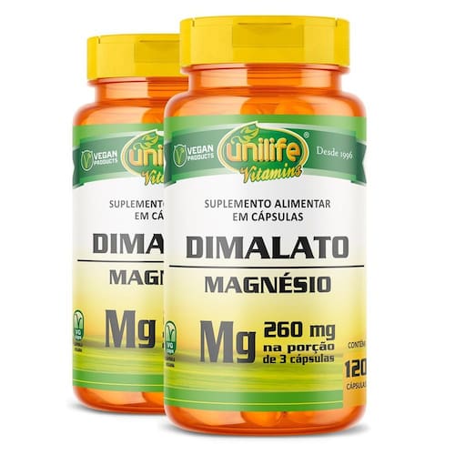Magnésio dimalato unilife 120 cápsulas Sobre o produto O magnésio dimalato é um suplemento mineral que desempenha diversas funções biológicas, auxiliando na função cardíaca, contração muscular e ativação enzimática. É essencial para o bom funcionamento do organismo e manutenção da boa saúde. Benefícios Consumar o suplemento de magnésio dimalato pode trazer muitos benefícios para a sua saúde, entre eles, auxiliar na boa saúde cardiovascular, melhora na produção de energia, apoio à função muscular e suporte à saúde óssea. Modo de usar Sugere-se a ingestão de 3 cápsulas ao dia, após a refeição. Ingerir com líquido. Ingredientes Magnésio dimalato e excipiente .S.P. 810 mg. Cápsula: gelatina vegetal e água purificada. Alergênicos Não contém glúten. Livre de lactose. Código anvisa Produto autorizado para comercialização em todo o território nacional através do anexo i da rdc 240/2018 da anvisa. Afe do ms 6.02234-1 Marca: Não Informado