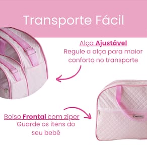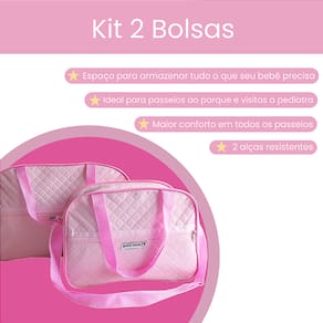 Com o Kit Bolsa Maternidade Dupla Menina Rosa, você terá: