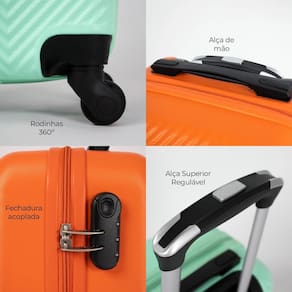 Kit 2 malas de viagem bordo 10kg Zug Swiss Move Verde e Laranja