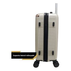 A mala conta com carrinho de 3 estágios, que permite ajustar o puxador para diferentes alturas,