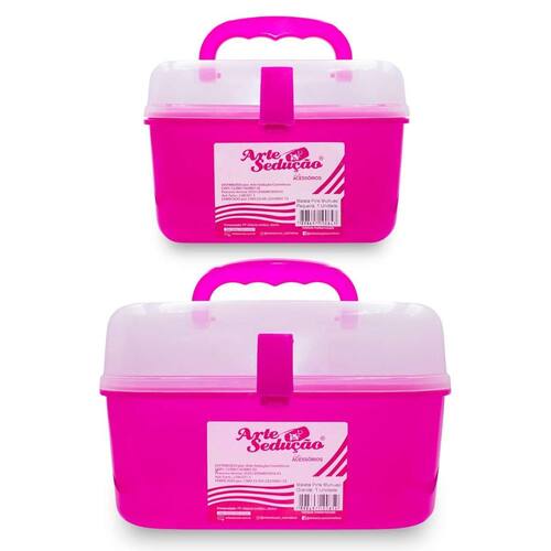 As Maletas Multiúso Arte Sedução, são indicadas para manicures, pedicures, maquiadoras e demais profissionais de estética que buscam organizar e transportar seus materiais com charme, de forma prática, leve e segura. Contém compartimento organizador removível, ideal para manter a organização. Possui alça dobrável para o transporte de forma prática e segura. Permite a organização e transporte de diversos itens como: esmaltes, maquiagens, materiais escolares, jóias, pequenos brinquedos, entre outros.