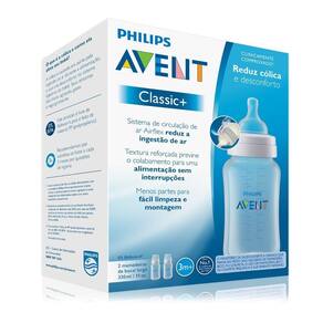 A mamadeira Avent Classic da Philips possui bico exclusivo que promove uma alimentação saudável e ativa que funciona de acordo com o ritmo natural de mamar do seu bebê. O bebê alterna mais facilmente entre a mamadeira e o peito. Além disso minimiza significamente o incômodo, principalmente a noite. Na medida em que o bebê mama o exclusivo diafragma do bico Avent é flexionado, permitindo a entrada de ar na mamadeira e nao na barriga do bebê. Feita em polipropileno, um material isento de bisfenol A.
