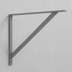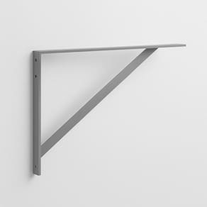 Possui acabamento zincado (galvanizado) anticorrosivo e capacidade de até 47 kg por peça com carga distribuída. Pode ser fixado diretamente em alvenaria, madeira ou concreto com parafusos e buchas (não inclusos).