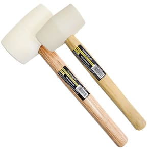 Martelo de Borracha 40MM - Branco: Ideal para pequenos ajustes e áreas delicadas, este martelo de 40mm oferece a precisão necessária para trabalhos mais detalhados. Sua cabeça de borracha branca garante uma aplicação suave, sem marcar ou danificar os pisos.