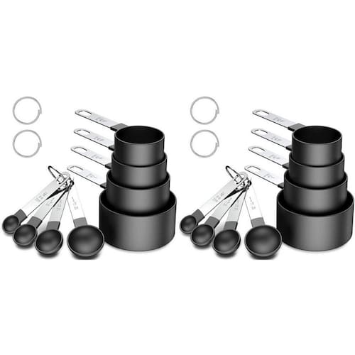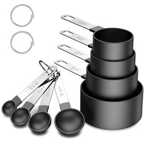 2 medidor culinário inox colher xícara cozinha preto 8pçs Conteúdo da embalagem: - kit com 2 conjuntos de medidores culinário em inox preto 8 peças