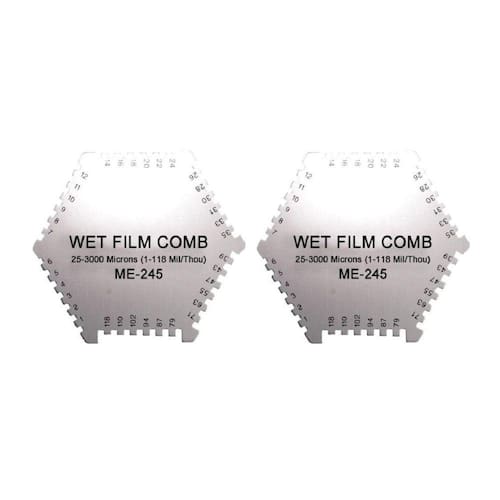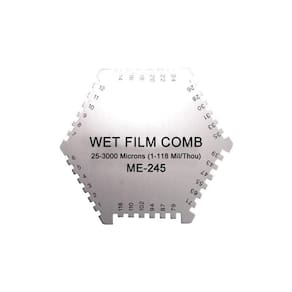 KIT 2 MEDIDOR DE ESPESSURA DE CAMADA ÚMIDA TIPO PENTE FAIXA 25 ~ 3000 MICRONS MOD. ME-245 DESCRIÇÃO: Medidor de espessura de camada úmida tipo pente faixa 25 ~ 3000 microns mod. me-245 CARACTERÍSTICAS: Utilizado para revestimento de tinta Prático e fácil de utilizar Mais qualidade na verificação de revestimentos úmidos Evita desperdício de recursos APLICAÇÃO: Utilizado na verificação da espessura do revestimento de tinta úmida resina de esmalte, adesivo, verniz e outros revestimentos aplicados em uma superfície lisa. ESPECIFICAÇÕES TÉCNICAS: Taxa de Medição: 25 ~ 3000µm / 1 ~ 118mili Distância de Graduação: 25µm ACESSÓRIOS FORNECIDOS: 2 - Medidor espressura ME-245 Manual de Instruções