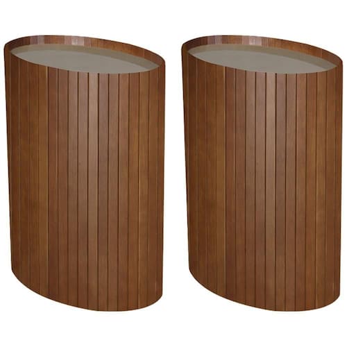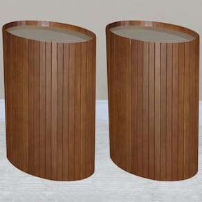 Kit 2 Mesa Apoio Lateral Oval Tampo Vidro Glow Madeira, é um uma peça versátil e moderna, ideal para deixar sua casa com uma estética incrível. Estrutura em madeira de tauari em forma de esteirinha e tampo em vidro de 6 mm. Compostas por tampo de vidro na cor glow, e madeira tauari em forma de esteirinha. Suporta até 15 Kg distribuídos. Possui design sofisticado, que oferece versatilidade e charme a sua decoração. Este móvel chegará em sua casa separado em 02 volumes.