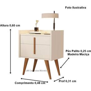 Kit 2 Mesa de Cabeceira 1 Gaveta 1 Porta Pés Palito 1188 Davi Plus Off White - Comprar Moveis para sua Casa Mesa de cabeceira Davi 1188 estilo retrô, pés palito, embalado com caixa reforçada nas laterais para não ocorrer no transporte. Produto exclusivo Comprar Móveis em Casa para deixar seu ambiente mais bonito e sofisticado Procure nossas redes sociais e confira todos nossos produtos e qualidade de atendimento : Produto com video de montagem no nosso canal, acesse nossas redes sociais: Comprar Móveis em Casa DIMENSÕES DO PRODUTO MONTADO Altura: 0,60 cm Largura: 0,48 cm Profundidade: 0,31 cm Caractersticas: 1 Gaveta corrediça TELESCÓPICA 1 Porta dobradiça metálica Pés Palito madeira maciça MDF 15MM As cores deste produto possui brilho. Puxadores em madeira. MONTAGEM: Este produto acompanha kit de montagem + manual de instrução detalhando passo a passo de como montar. A montagem do produto deverá ser feita por um profissional, para que não ocorram danos no produto. não nos responsabilizamos por erro de montagem Atenção: A montagem não é oferecida pela Comprar Móveis em Casa, a montagem do produto é por conta do comprador. OBSERVAÇÕES IMPORTANTES: A é de 90 dias por defeitos de fabricação. Se no ato de recebimento do produto o cliente verificar que o produto não está em prefeito estado, principalmente por ocasião de transporte irregular, o cliente deverá recusar o recebimento do produto e entrar em contato para resolver o problema. Podem haver variações referentes à tonalidade das cores expressas nas fotos, por conta de fatores como iluminação e brilho de cada monitor/celular. Fotos meramente ilustrativas, não acompanham os produtos de decoração. Atenção, se atente a politica de troca/devolução da empresa. Marca: Não Informado
