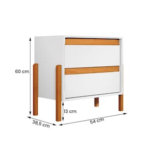 Produzida em MDF de 15 mm com pés em madeira maciça, garante resistência e um visual sofisticado.