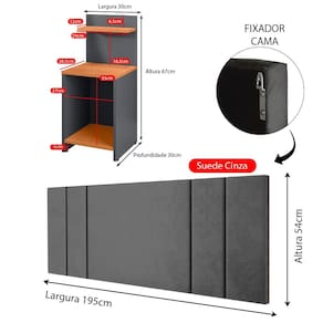 Com um design moderno e funcional, este conjunto combina sofisticação e praticidade, proporcionando conforto e estilo ao seu lar. As mesas de cabeceira são ideais para otimizar o espaço, facilitando a organização de objetos pessoais. A cabeceira, por sua vez, adiciona um toque de requinte e modernidade, destacando-se pelo seu tecido macio que eleva o conforto.