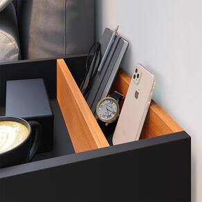 Ela conta com uma divisória em seu tampo superior, perfeita para acomodar itens pequenos e de uso diário, como: celular, bloco de anotações, despertador, entre outros.