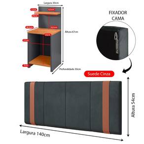 Com um design moderno e funcional, este conjunto combina sofisticação e praticidade, proporcionando conforto e estilo ao seu lar. As mesas de cabeceira são ideais para otimizar o espaço, facilitando a organização de objetos pessoais. A cabeceira, por sua vez, adiciona um toque de requinte e modernidade, destacando-se pelo seu tecido macio que eleva o conforto.