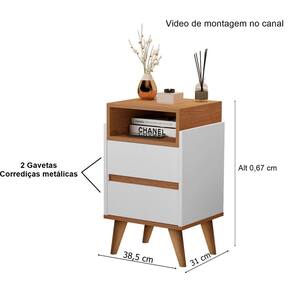 Kit 2 Mesas de Cabeceira Pés palito 2 gavetas Verona Plus Branco / Nature - Comprar moveis para sua casa Mesa de cabeceira Verona estilo retrô, pés palito, embalado com caixa reforçada nas laterais para não ocorrer no transporte. Vendido pela Comprar Moveis em Casa para deixar seu ambiente mais bonito e sofisticado Procure nossas redes sociais e confira todos nossos produtos e qualidade de atendimento : Produto com video de montagem no nosso canal, acesse nossas redes sociais DIMENSÕES DO PRODUTO MONTADO Altura: 0,67 cm Largura: 38,5 cm Profundidade: 0,31 cm Caractersticas: 2 gavetas corrediças metalicas Pés Palito madeira maciça Pés aproximadamente 17cm altura Produto em MDP / MDF 15mm MONTAGEM: Este produto acompanha kit de montagem + manual de instrução detalhando passo a passo de como montar. A montagem do produto deverá ser feita por um , para que não ocorram danos no produto. não nos responsabilizamos por erro de montagem Atenção: A montagem não é oferecida pela Comprar Moveis em Casa, a montagem do produto é por conta do comprador. OBSERVAÇÕES IMPORTANTES: A é de 90 dias por defeitos de fabricação. Se no ato de recebimento do produto o cliente verificar que o produto não está em prefeito estado, principalmente por ocasião de transporte irregular, o cliente deverá recusar o recebimento do produto e entrar em contato para resolver o problema. Podem haver variações referentes à tonalidade das cores expressas nas fotos, por conta de fatores como iluminação e brilho de cada monitor/celular. Fotos meramente ilustrativas, não acompanham os produtos de decoração. Atenção, se atente a politica de troca/devolução da empresa. Marca: Não Informado Ean: 7795295966430