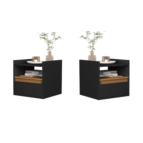 Kit 2 Mesas de Cabeceira Suspensa com Porta Medina Plus - Cores - Comprar Moveis para sua Casa Cor: Preto/Nature Mesa de cabeceira Suspensa Minerva estilo retrô, embalado com caixa reforçada nas laterais para não ocorrer no transporte. Vendido pela Comprar Móveis em casa para deixar seu ambiente mais bonito e sofisticado Procure nossas redes sociais e confira todos nossos produtos e qualidade de atendimento : Produto com video de montagem no nosso canal, acesse nossas redes sociais: Comprar Móveis em Casa DIMENSÕES DO PRODUTO MONTADO Altura: 0,39 cm Largura: 0,34 cm Profundidade: 0,33 cm Caractersticas: 1 Porta basculante Cabeceira suspensa, acompanha grapa para instalação Material: MDP / MDF pode haver variações da matéria em lotes diferentes Pintura UV MONTAGEM: Este produto acompanha kit de montagem + manual de instrução detalhando passo a passo de como montar. A montagem do produto deverá ser feita por um , para que não ocorram danos no produto. não nos responsabilizamos por erro de montagem Atenção: A montagem não é oferecida pela Comprar Móveis em Casa, a montagem do produto é por conta do comprador. OBSERVAÇÕES IMPORTANTES: A é de 90 dias por defeitos de fabricação. Em caso de erro de montagem, uso inadequado do produto, ou outros acidentes do gênero esta não será acionada. Se no ato de recebimento do produto o cliente verificar que o produto não está em prefeito estado, principalmente por ocasião de transporte irregular, o cliente deverá recusar o recebimento do produto e entrar em contato para resolver o problema. Podem haver variações referentes à tonalidade das cores expressas nas fotos, por conta de fatores como iluminação e brilho de cada monitor/celular. Fotos meramente ilustrativas, não acompanham os produtos de decoração. Se atente com a politica de troca/devolução da empresa, pois não é possivel realizar devolução do item montado. Marca: Não Informado Ean: 7795296566981