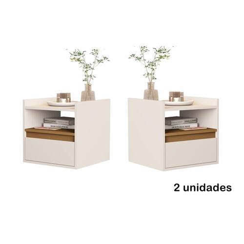 Kit 2 Mesas de Cabeceira Suspensa com Porta Medina Plus - Cores - Comprar Moveis para sua Casa Cor: Off white / Nature Mesa de cabeceira Suspensa Minerva estilo retrô, embalado com caixa reforçada nas laterais para não ocorrer no transporte. Vendido pela Comprar Móveis em casa para deixar seu ambiente mais bonito e sofisticado Procure nossas redes sociais e confira todos nossos produtos e qualidade de atendimento : Produto com video de montagem no nosso canal, acesse nossas redes sociais: Comprar Móveis em Casa DIMENSÕES DO PRODUTO MONTADO Altura: 0,39 cm Largura: 0,34 cm Profundidade: 0,33 cm Caractersticas: 1 Porta basculante Cabeceira suspensa, acompanha grapa para instalação Material: MDP / MDF pode haver variações da matéria em lotes diferentes Pintura UV MONTAGEM: Este produto acompanha kit de montagem + manual de instrução detalhando passo a passo de como montar. A montagem do produto deverá ser feita por um , para que não ocorram danos no produto. não nos responsabilizamos por erro de montagem Atenção: A montagem não é oferecida pela Comprar Móveis em Casa, a montagem do produto é por conta do comprador. OBSERVAÇÕES IMPORTANTES: A é de 90 dias por defeitos de fabricação. Em caso de erro de montagem, uso inadequado do produto, ou outros acidentes do gênero esta não será acionada. Se no ato de recebimento do produto o cliente verificar que o produto não está em prefeito estado, principalmente por ocasião de transporte irregular, o cliente deverá recusar o recebimento do produto e entrar em contato para resolver o problema. Podem haver variações referentes à tonalidade das cores expressas nas fotos, por conta de fatores como iluminação e brilho de cada monitor/celular. Fotos meramente ilustrativas, não acompanham os produtos de decoração. Se atente com a politica de troca/devolução da empresa, pois não é possivel realizar devolução do item montado. Marca: Não Informado Ean: 7795296567056