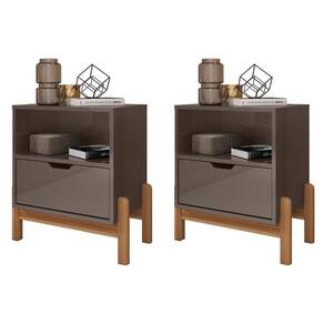 Kit 2 Mesas de Cabeceira 1 Gaveta 004015, é o móvel ideal para se ter ao lado da cama, pois ele armazena seus itens com muita comodidade e requinte. Possui amplo espaço e estilo, sem mencionar a qualidade, é um móvel fabricado com os melhores materiais do mercado. Estrutura elaborada em MDP de 25mm e 15mm, gaveta com corrediças telescópicas, o que garante mais praticidade e eficiência no dia-a-dia. Possui também nicho para a disposição de seus objetos mais utilizados. Suas gavetas não necessitam de puxadores, devido ao seu design. Sua pintura conta com acabamento Print Wood, patenteado e exclusivo Casa D, atóxico e anti mofo. Cada uma suporta até 20 kg distribuídos, seus pés são elaborados em madeira maciça, garantindo qualidade e segurança. Com sua versatilidade e estilo, ele irá acrescentar mais personalidade ao seu quarto. Este móvel chegará na sua casa separado em 02 volumes.
