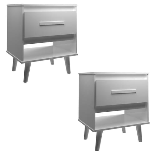 Kit 2 Mesas de Cabeceira 1 Gaveta com Nicho e Pés Retro Estilo Moderno para Quarto Branco Mobília Decor
