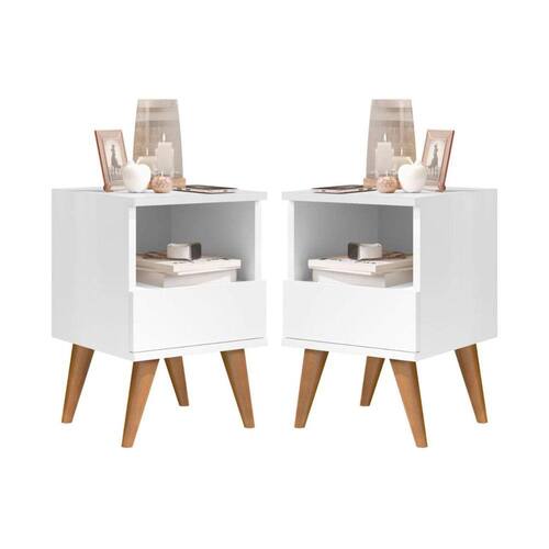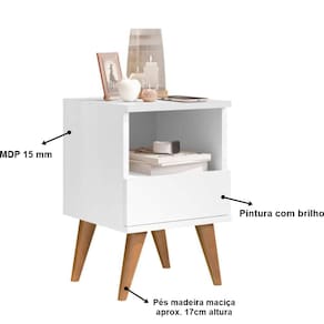 Mesa de cabeceira Pix estilo retrô, pés palito, embalado com caixa reforçada nas laterais para não ocorrer avaria no transporte.