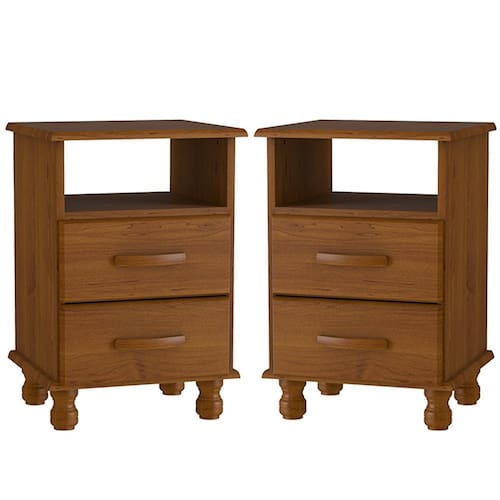 Características do Kit 2 Mesas de Cabeceira 2 Gavetas 100% Madeira de Pinus: