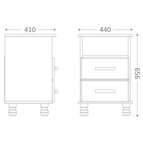 Dimensões do Kit 2 Mesas de Cabeceira 100% Madeira Maciça Pés Torneados 44 cm: