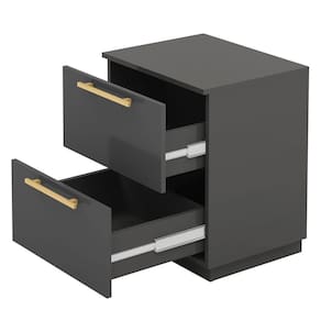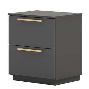 Características da Mesa de Cabeceira Debai: - Produzido em MDP; - Puxadores com acabamento dourado; - Corpo de MDP 15mm de expessura; - Rodapé de 5 cm; - 2 Gavetas com corrediça telescópicas; - Não acompanha objetos de decoração;