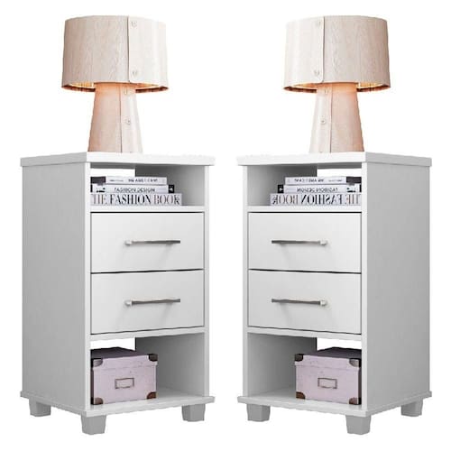Kit Com 2 Mesas de Cabeceira 2 Gavetas Valente Branco - Rud Rack