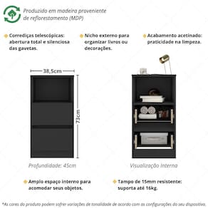 - Sustentável e durável: produzida em MDP 15mm proveniente de reflorestamento, contribuindo para um consumo mais consciente.