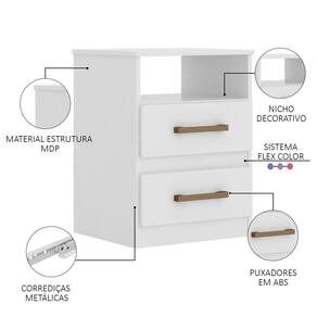 A Mesa de Cabeceira é uma excelente aliada na organização do seu cômodo, além de contribuir na decoração, ela te ajuda a manter seus objetos sempre à mão, sem atrapalhar a movimentação do dormitório. Um dos detalhes mais encantadores da Mesa de Cabeceira Ares é a faixa , ao montar o móvel você pode escolher a cor da faixa que deseja combinando com a decoração do quarto, além disso, conta com 1 tampo, 1 nicho e 2 gavetas para dispor livros, , copo de água, óculos e tudo mais que precisar. O móvel é produzido em MDP, com revestimento em UV e as gavetas possuem corrediças metálicas, garantindo qualidade, resistência e durabilidade.