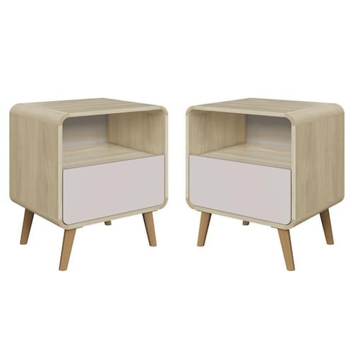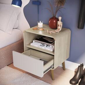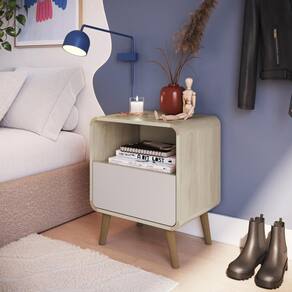 O Kit Conjunto 02 Mesas de Cabeceira Canto Curvo com Nicho 01 Gaveta e Pés Palito Retrô da Completa Móveis apresenta funcionalidade, praticidade e elegância com design arrojado e atemporal! Com cantos arredondados, traz uma leveza ao ambiente.