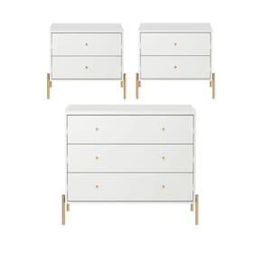 Especificações: Conjunto composto por 2 mesas de cabeceira e 1 cômoda.
