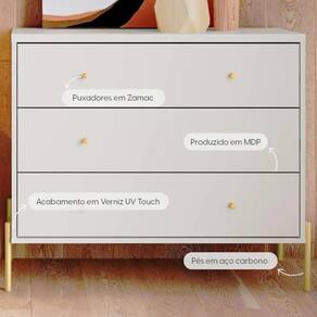 Cômoda 3 Gavetas Jasper 94 cm - Branco Gloss c/ Dourado