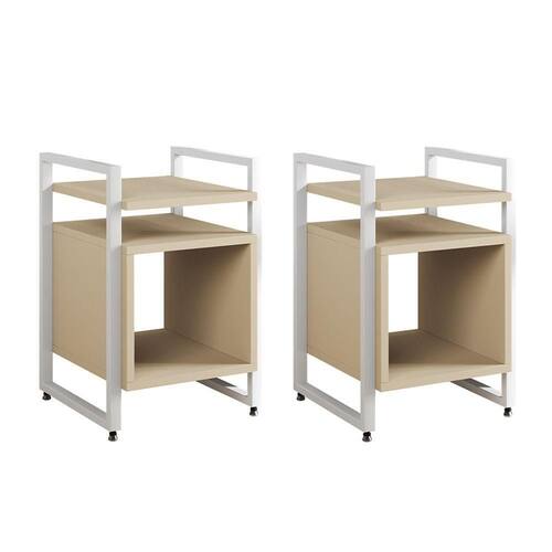 AS IMAGENS SÃO MERAMENTE ILUSTRATIVAS E PODEM SOFRER VARIAÇÕES DE COR E PEQUENOS DETALHES DE ACORDO COM O SEU MONITOR, ILUMINAÇÃO DO AMBIENTE E ATÉ MESMO A SUA PERCEPÇÃO 2 Mesas de Cabeceira Industrial Marrocos Ferro Branco e Tampo Off-white