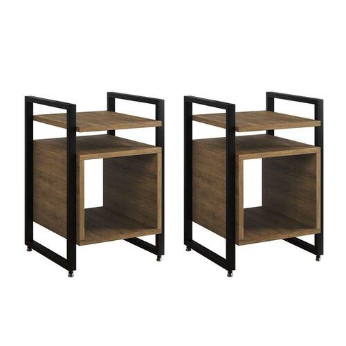 AS IMAGENS SÃO MERAMENTE ILUSTRATIVAS E PODEM SOFRER VARIAÇÕES DE COR E PEQUENOS DETALHES DE ACORDO COM O SEU MONITOR, ILUMINAÇÃO DO AMBIENTE E ATÉ MESMO A SUA PERCEPÇÃO 2 Mesas de Cabeceira Industrial Marrocos Ferro Preto e Tampo FreijÃ