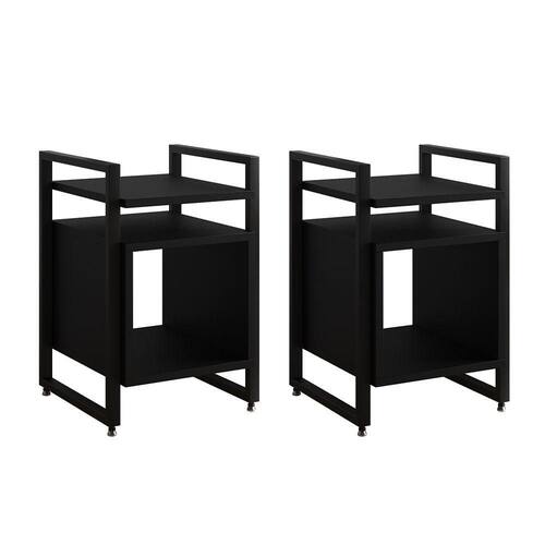 AS IMAGENS SÃO MERAMENTE ILUSTRATIVAS E PODEM SOFRER VARIAÇÕES DE COR E PEQUENOS DETALHES DE ACORDO COM O SEU MONITOR, ILUMINAÇÃO DO AMBIENTE E ATÉ MESMO A SUA PERCEPÇÃO 2 Mesas de Cabeceira Industrial Marrocos Ferro Preto e Tampo Preto