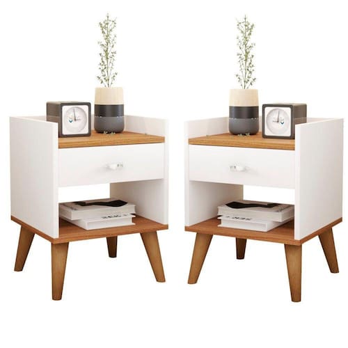 * Embora o produto acompanhe o manual de montagem e seja bem simples, verifique a complexidade antes de decidir montá-lo s Acabamento da Gaveta: BP Acabamento da Prateleira: BP Acabamento dos Pés: Verniz Altura dos Pés: 17 Ambiente Principal: Quarto Complexidade da Montagem: Baixa: pode ser montado por uma pessoa sozinha Cor: Branco/Freijó Cor do Produto: Branco/Freijó Cor Interna: Branco Escala de Brilho: Fosco Escala de Brilho da Gaveta: Fosco Escala de Brilho da Prateleira: Fosco Gaveta com Chave: Não Itens Inclusos: 2 Mesas de Cabeceira, Kit Ferragens e Manual de Montagem Manual de Montagem e Instalação: https://cdn2.madeiramadeira.com.br/atributo/meivenda/1701799-mvdmm-0016-00.pdf Material da Gaveta: MDF/MDP Material da Prateleira: MDF/MDP Material do Puxador da Gaveta: Cromado Material dos Pés: Madeira Maciça Material Principal: MDF/MDP Necessita Montagem: Sim Origem do Produto: Nacional Pés Reguláveis: Não Peso: 7 Peso Máximo por Gaveta: 5 Peso Máximo por Prateleira: 10 Pet Friendly: Não Possui Espelho: Não Possui Possui Nichos: 01 Possui Pés: 04 Possui Portas: Não Possui Prateleiras: 02 Possui Vidro: Não Quantidade de Nichos: 01 Recomendações de Uso, Manutenção e Limpeza: Limpar com pano umedecido Sapatas Niveladoras: Não Sistema de Montagem: Parafusos e cavilhas Suporta Até (kg): 25 Tipo de Corrediça da Gaveta: Metálica Simples Tipo de Madeira Maciça dos Pés: Pinus Tipo de Puxador da Gaveta: Externo Marca: MVD