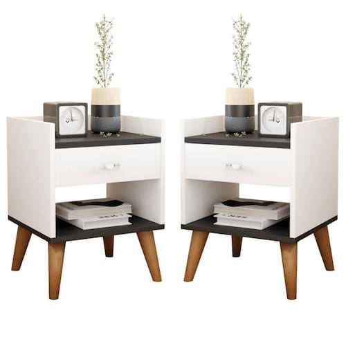 * Embora o produto acompanhe o manual de montagem e seja bem simples, verifique a complexidade antes de decidir montá-lo s Acabamento da Gaveta: BP Acabamento da Prateleira: BP Acabamento dos Pés: Verniz Altura dos Pés: 17 Ambiente Principal: Quarto Complexidade da Montagem: Baixa: pode ser montado por uma pessoa sozinha Cor: Branco/Preto Cor do Produto: Branco/Preto Cor Interna: Branco Escala de Brilho: Fosco Escala de Brilho da Gaveta: Fosco Escala de Brilho da Prateleira: Fosco Gaveta com Chave: Não Itens Inclusos: 2 Mesas de Cabeceira, Kit Ferragens e Manual de Montagem Manual de Montagem e Instalação: https://cdn2.madeiramadeira.com.br/atributo/meivenda/1701799-mvdmm-0016-00.pdf Material da Gaveta: MDF/MDP Material da Prateleira: MDF/MDP Material do Puxador da Gaveta: Cromado Material dos Pés: Madeira Maciça Material Principal: MDF/MDP Necessita Montagem: Sim Origem do Produto: Nacional Pés Reguláveis: Não Peso: 7 Peso Máximo por Gaveta: 5 Peso Máximo por Prateleira: 10 Pet Friendly: Não Possui Espelho: Não Possui Possui Nichos: 01 Possui Pés: 04 Possui Portas: Não Possui Prateleiras: 02 Possui Vidro: Não Quantidade de Nichos: 01 Recomendações de Uso, Manutenção e Limpeza: Limpar com pano umedecido Sapatas Niveladoras: Não Sistema de Montagem: Parafusos e cavilhas Suporta Até (kg): 25 Tipo de Corrediça da Gaveta: Metálica Simples Tipo de Madeira Maciça dos Pés: Pinus Tipo de Puxador da Gaveta: Externo Marca: MVD