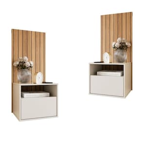 2 Mesas de Cabeceira Suspensa Efeito Ripado Cross Freijó