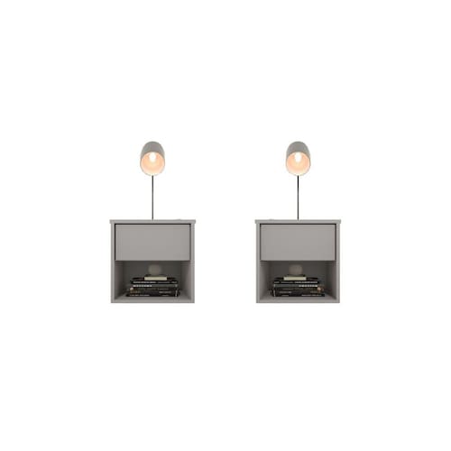 Kit 2 Mesas de Cabeceira Suspensa Retrô 1 Gaveta 100% MDF PlanCasa - Cinza