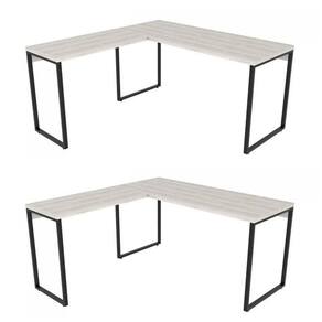 Kit 2 Mesas de Escritório em L Estilo Industrial 1,50mx1,50m Kuadra Snow - Branco