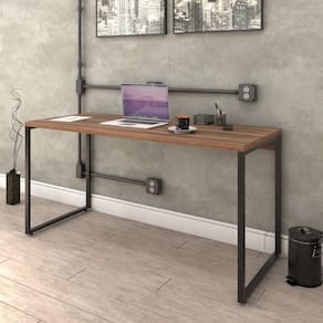 Kit 2 Mesas De Escritório Office 150cm Estilo Industrial Prisma C08 Nogal - Mpozenato Precisando dar uma repaginada no seu cantinho de estudos ou home office? O Kit 2 Mesas de Escritório Office 150cm Estilo Industrial Prisma da Mpozenato, vai valorizar a decoração do ambiente com seu estilo industrial, harmonizando o metal e os tons de madeira resultando em um acabamento rústico misturado ao moderno. Produzida em MDP com tampo engrossado de 30mm, revestimento em BP, solda com acabamento suavizado e pintura epóxi a pó que proporciona maior durabilidade e resistência ao produto. Além disso, conta com pés niveladores. Essa mesa pode ser utilizada em diversas composições com outros móveis e pode fazer parte do seu escritório, sala ou home office.