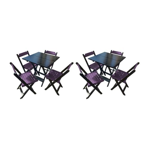 Kit 2 Mesas De Madeira Dobrável Preto 70x70 Com 4 Cadeiras Dobráveis Roxo É ideal para bares, restaurantes, estabelecimentos, áreas de lazer e também para sua casa. Feito em madeira maciça, seu design permite que seja encaixado em qualquer ambiente, trazendo um toque a mais para seu estabelecimento. Por ser dobrável torna-se mais fácil de guardar, manusear e limpar o produto.