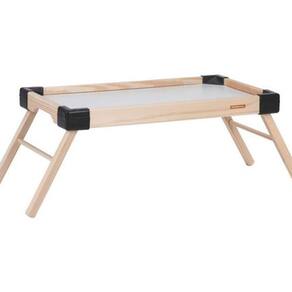 Informações gerais: 1. Produzida em madeira de pinus acabamento natural sem pintura. 2. Cantoneiras em polipropileno cor preta. 3. Design moderno. 4. Ideal para servir café, lanches e refeições. 5. Pés dobráveis. 6. Não possui trava nos pés. 7. Marca: Tramontina 8. Modelo: Small Cód: 91390108 9. Material: Madeira 10. Pés dobráveis: Sim 11. Comprimento x Largura x Altura: 47.6 cm x 27.6 cm x 4.5 cm 12. Forma da bandeja: Retangular