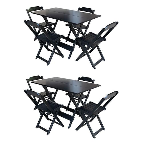 Kit 2 Mesas Dobraveis Em Madeira Maciça 120X70 Com 4 Cadeiras - Preto - Preto