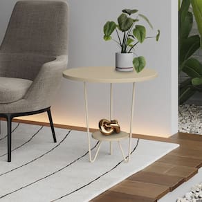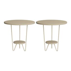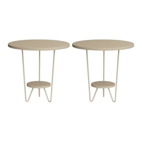 Kit 2 Mesas Laterais Redonda Industrial Italy Ferro Branco e Tampo Off-white