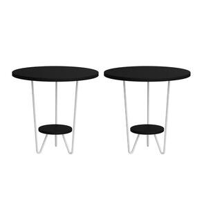 AS IMAGENS SÃO MERAMENTE ILUSTRATIVAS E PODEM SOFRER VARIAÇÕES DE COR E PEQUENOS DETALHES DE ACORDO COM O SEU MONITOR, ILUMINAÇÃO DO AMBIENTE E ATÉ MESMO A SUA PERCEPÇÃO 2 Mesas Laterais Redonda Industrial Italy Ferro Branco e Tampo Preto