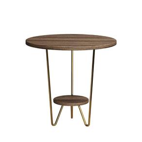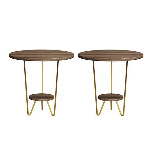 AS IMAGENS SÃO MERAMENTE ILUSTRATIVAS E PODEM SOFRER VARIAÇÕES DE COR E PEQUENOS DETALHES DE ACORDO COM O SEU MONITOR, ILUMINAÇÃO DO AMBIENTE E ATÉ MESMO A SUA PERCEPÇÃO 2 Mesas Laterais Redonda Industrial Italy Ferro Dourado e Tampo AmÃndoa