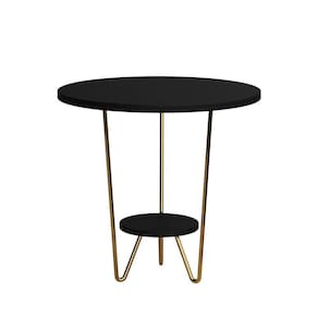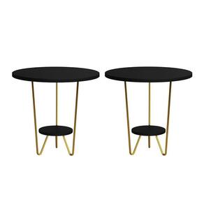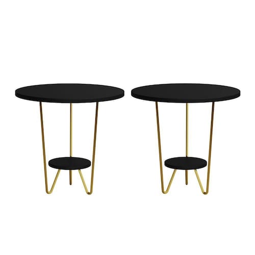AS IMAGENS SÃO MERAMENTE ILUSTRATIVAS E PODEM SOFRER VARIAÇÕES DE COR E PEQUENOS DETALHES DE ACORDO COM O SEU MONITOR, ILUMINAÇÃO DO AMBIENTE E ATÉ MESMO A SUA PERCEPÇÃO 2 Mesas Laterais Redonda Industrial Italy Ferro Dourado e Tampo Preto