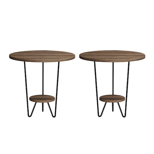 Kit 2 Mesas Laterais Redonda Industrial Italy Ferro Preto e Tampo Amêndoa - Marrom