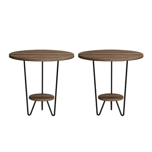 AS IMAGENS SÃO MERAMENTE ILUSTRATIVAS E PODEM SOFRER VARIAÇÕES DE COR E PEQUENOS DETALHES DE ACORDO COM O SEU MONITOR, ILUMINAÇÃO DO AMBIENTE E ATÉ MESMO A SUA PERCEPÇÃO 2 Mesas Laterais Redonda Industrial Italy Ferro Preto e Tampo AmÃndoa